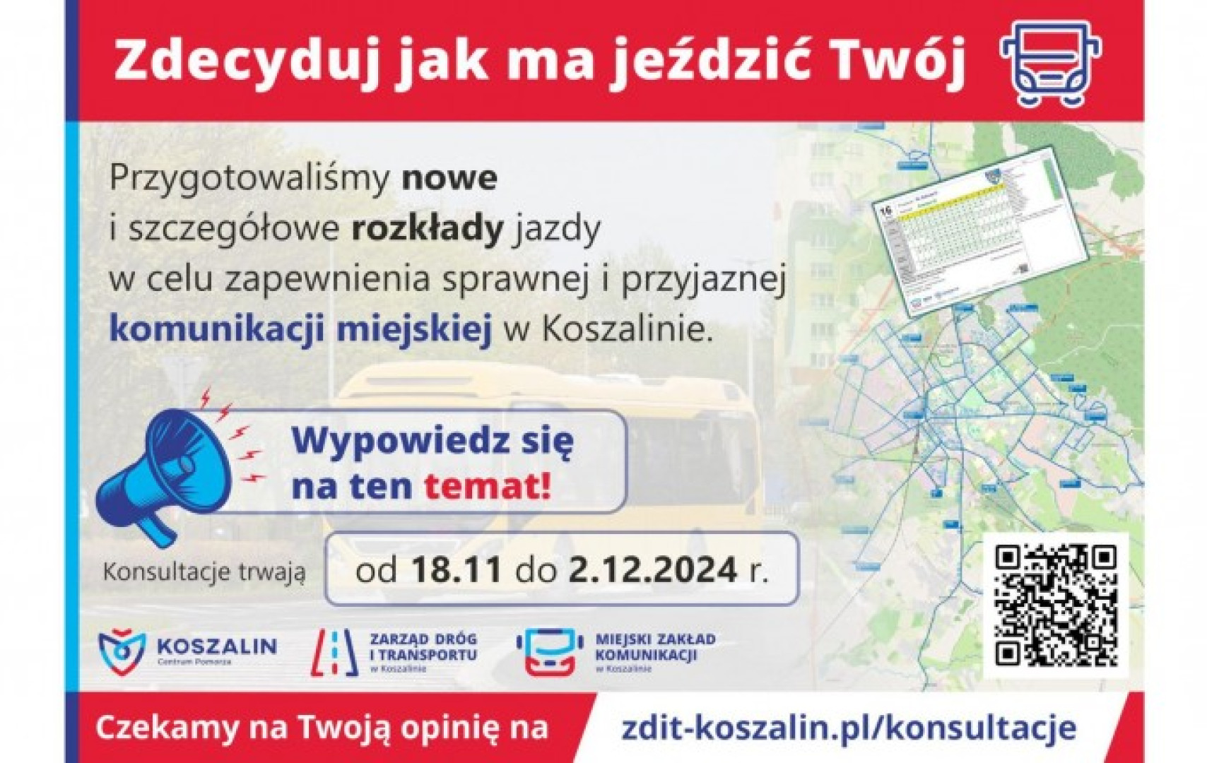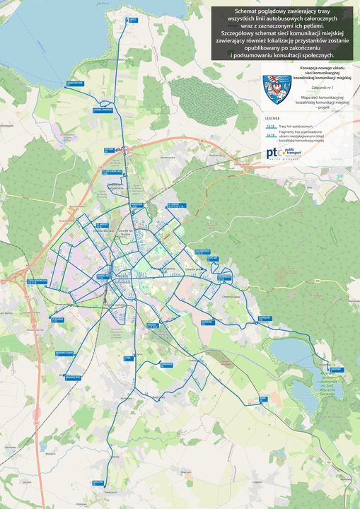 Zapraszamy na konsultacje społeczne dotyczące nowego układu sieci komunikacji miejskiej w Koszalinie w zakresie częstotliwości kursowania autobusów.